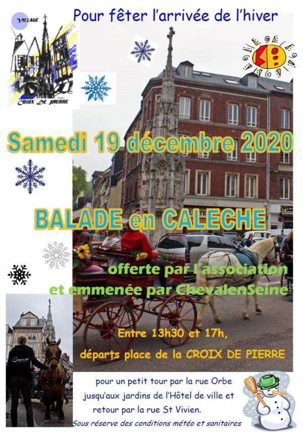 Alors, voilà! Pour petits et grands, Samedi 19 décembre, de 13h30 à 17h, une calèche de l’Asso Cheval en Seine vous emmènera faire un petit tour dans le quartier à partir de la place de la Croix de pierre, pour fêter l’arrivée de l’hiver.