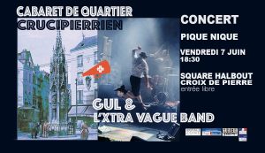 Un cabaret où seront interprétées les chansons écrites par les enfants des écoles et le collège du quartier avec la complicité de guL tout au long de l’année, Une Chorale Crucipierrienne Éphémère, Des invités prestigieux et de choix, le tout accompagné par l’Xtra Vague Band » Octet jubilatoire, foutraque, et offensif avec pas mal de truc dedans » de guL qui clôturera cette soirée tout en fêtant la sortie d’ INTERNATIONAL le tout nouvel album du groupe